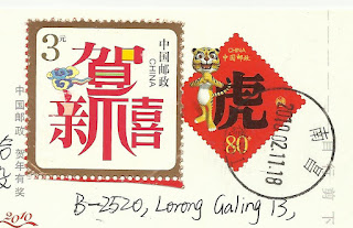 A pair stamp from Polish comic "Tytus, Romek i A'Tomek" with different design (both having face value 1,55zł) and a pair of building definitive stamps (20gr) were used on this postcard. It was sent from Warszawa on 18.2.2010.